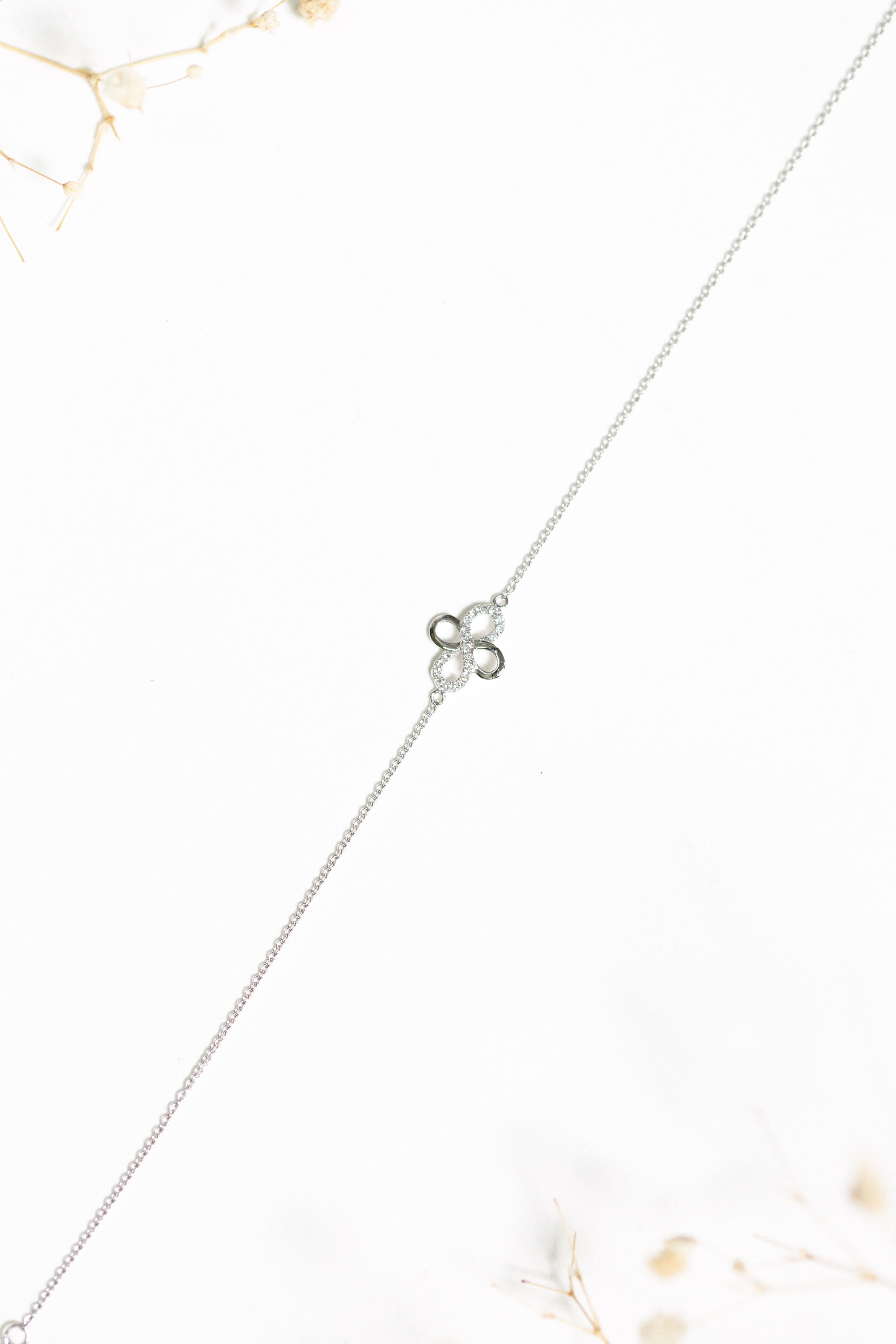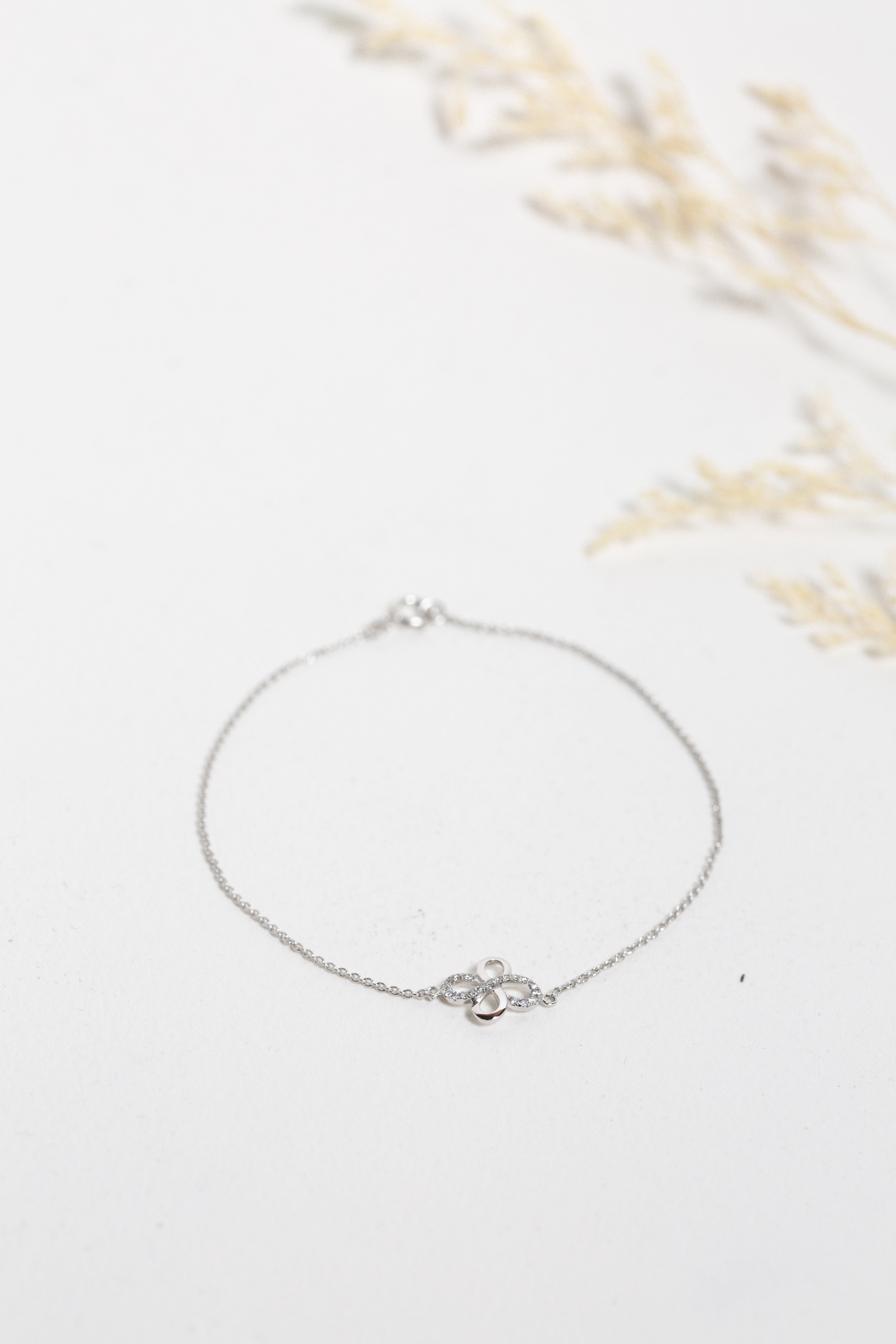 Delicate and elegant, our Clover Diamond Bracelet is crafted in 9ct white gold and features a clover motif - symbolising luck. With its fine chain and subtle shimmer, this bracelet is a modern piece with a timeless touch.