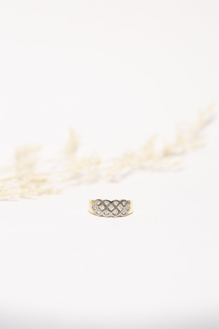 Discover the allure of our Fleetwood Diamond Ring, where modern elegance meets timeless design. The ring features a delicate lattice pattern, intricately crafted from 18ct gold and adorned with 0.30ct of sparkling diamonds.