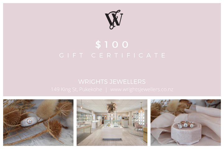 Your digital Gift Certificate will automatically be emailed to you. Gift Certificates are redeemable at Wrights Jewellers in-store or online and are valid for 12months.