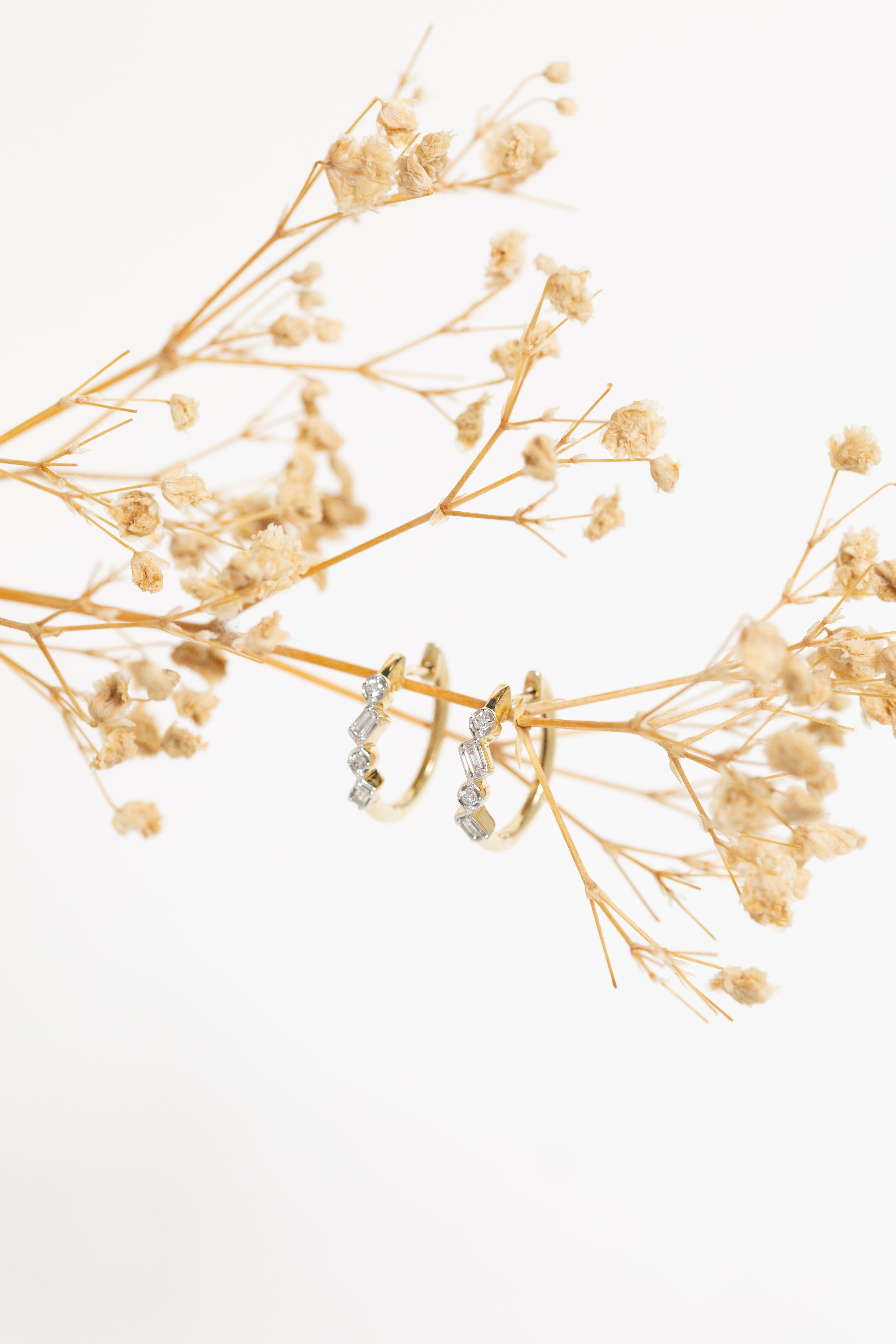 Complete the look with our elegant Nadia hoop earrings, designed to perfectly complement the Nadia necklace. Featuring a delicate arrangement of round-brilliant-cut and baguette-cut Diamonds, these 9ct gold hoops add a refined sparkle to any ensemble. Timeless and graceful, they make a stunning gift or a sophisticated addition to your own collection.