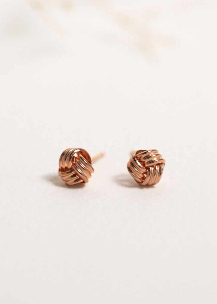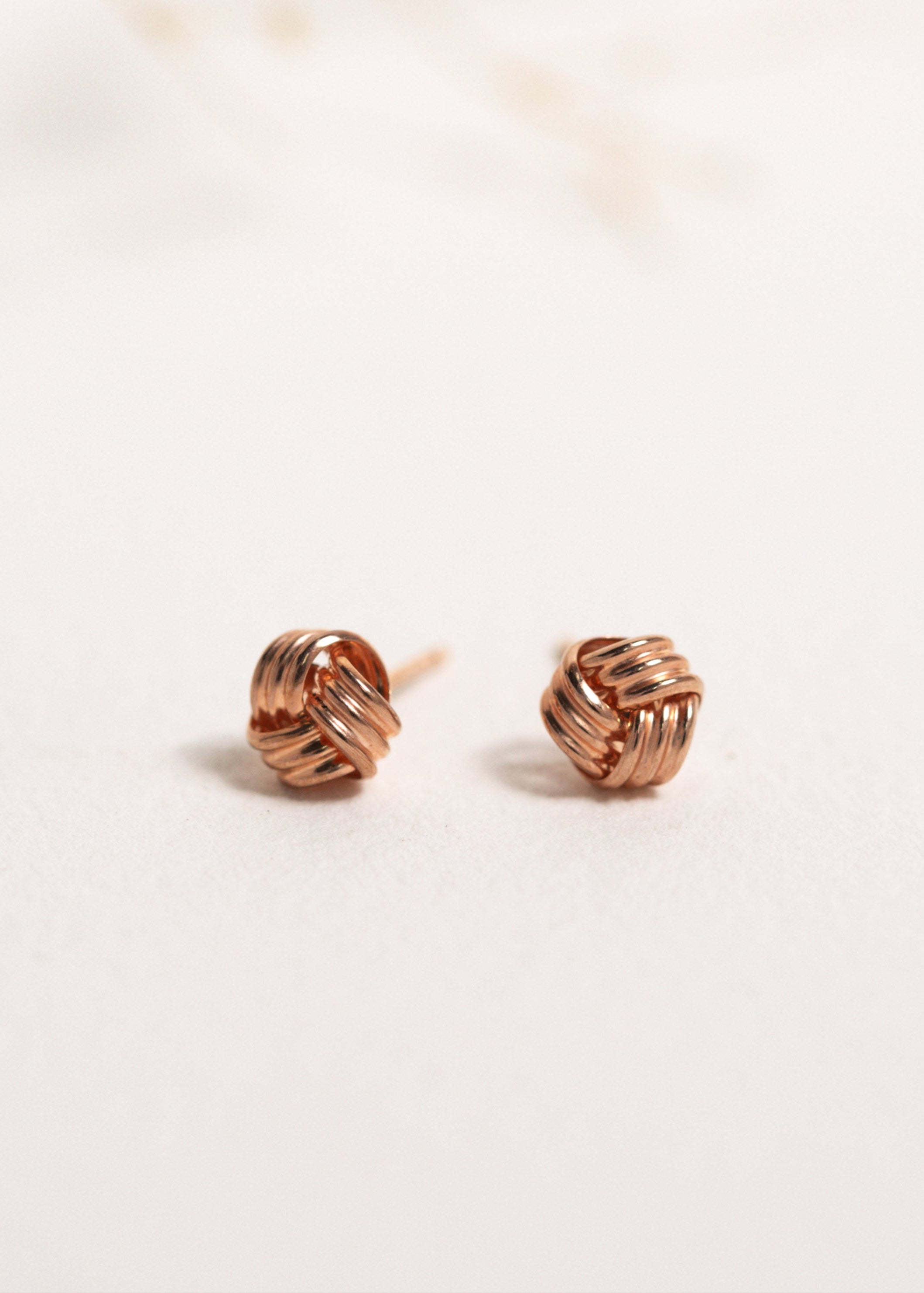 Delicate and full of charm, these 9ct rose gold knot stud earrings offer a modern take on a timeless symbol. Their soft blush hue and graceful design make them a perfect choice for everyday elegance or a thoughtful gift with meaning.