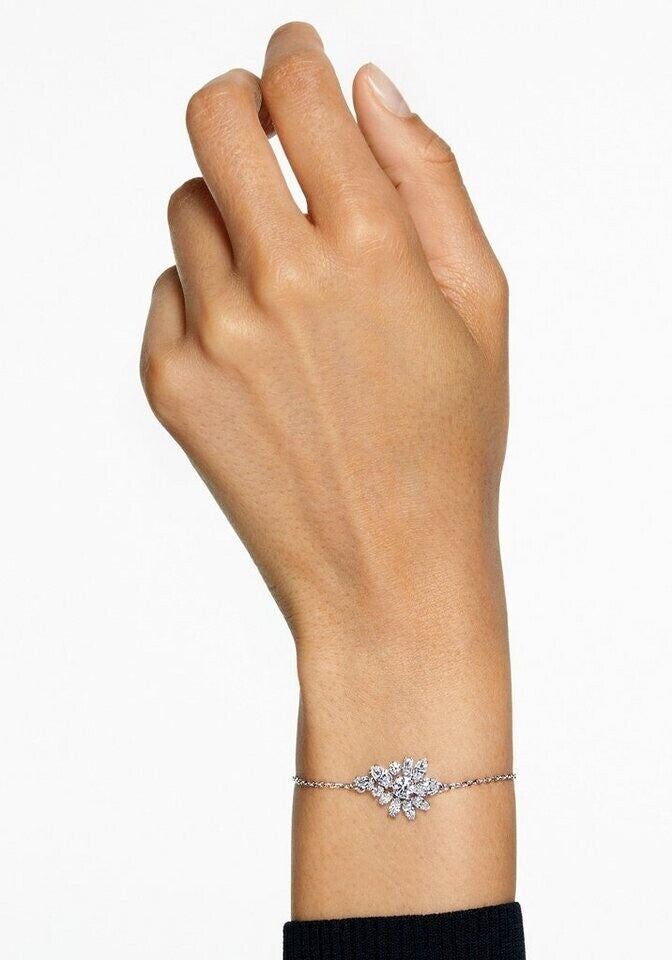 Complement any outfit with this delicate flower bracelet from the Gema family. Shimmering with a mix of clear stones in refined prong settings, it has a rhodium plated chain and adjustable closure for the perfect fit. Wear it solo or stacked with other pieces from this captivating collection.